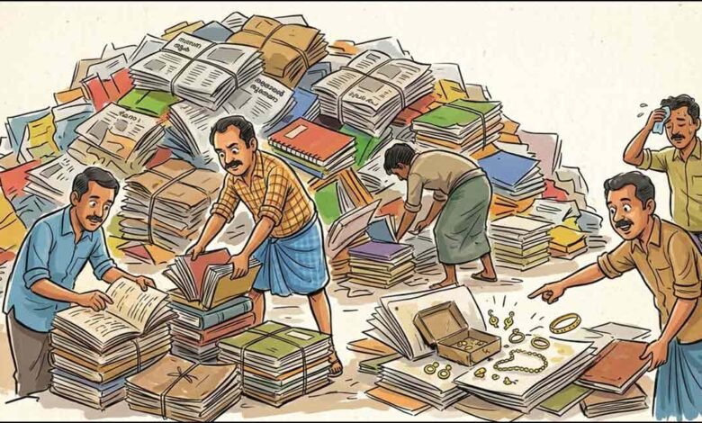 ആക്രിക്കടയിൽ വിറ്റ പുസ്തകത്തിൽ 6 പവൻ സ്വർണം; തിരച്ചിലിൽ 4 ഗ്രാം ഒഴികെ കണ്ടെത്തി
