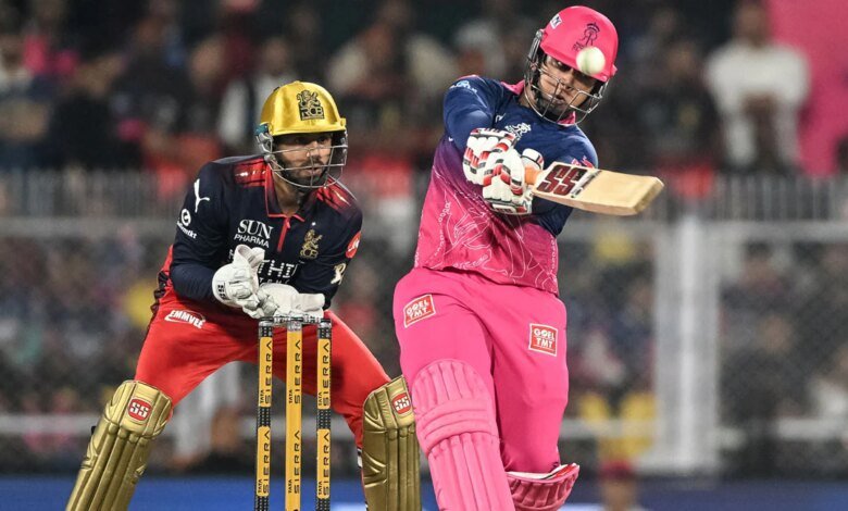 ഗുവാഹത്തി∙ ആദ്യത്തെ മത്സരത്തിൽ മാറ്റ് ഹെൻറി. അടുത്ത മത്സരങ്ങളിൽ കഗീസോ റബാദയും ജസ്പ്രീത് ബുമ്രയും. വൈഭവ് സൂര്യവംശിയെന്ന പതിനഞ്ചുകാരൻ പവർ ഹൗസിന്റെ തല്ലുകിട്ടി പതംവന്ന ലോകോത്തര ബോളർമാരുടെ പട്ടികയിലേക്ക് ഇന്നലെ പുതിയൊരു എൻട്രി കൂടി; ജോഷ് ഹെയ്സൽവുഡ്! 26 പന്തുകളിൽ 7 സിക്സും 8 ഫോറും അടക്കം 78 റൺസ് നേടിയ വണ്ടർ വൈഭവിന്റെ കരുത്തിൽ, റോയൽ ചാലഞ്ചേഴ്സ് ബെംഗളൂരുവിനെതിരെ 6 വിക്കറ്റിന്റെ ജയം പിടിച്ചെടുത്ത് രാജസ്ഥാൻ റോയൽസ്. മഴമൂലം ഒരു മണിക്കൂർ വൈകിത്തുടങ്ങിയ മത്സരത്തിൽ, ടോസ് നഷ്ടപ്പെട്ട് ആദ്യം ബാറ്റ് ചെയ്ത ബെംഗളൂരു 20 ഓവറിൽ 8 വിക്കറ്റ് നഷ്ടത്തിൽ 201 റൺസ് നേടി. ക്യാപ്റ്റൻ രജത് പാട്ടിദാർ (40 പന്തിൽ 63), വിരാട് കോലി (16 പന്തിൽ 32), വെങ്കടേഷ് അയ്യർ (15 പന്തിൽ 29 നോട്ടൗട്ട്) എന്നിവരാണ് ബെംഗളൂരുവിന് ഭേദപ്പെട്ട സ്കോർ നൽകിയത്. മറുപടി ബാറ്റിങ്ങിൽ വൈഭവ് നൽകിയ മിന്നൽ തുടക്കവും ധ്രുവ് ജുറേലിന്റെ (43 പന്തിൽ 81 നോട്ടൗട്ട്) ആങ്കർ ഇന്നിങ്സും ചേർന്നതോടെ 18 ഓവറിൽ രാജസ്ഥാൻ ലക്ഷ്യം കണ്ടു. സ്കോർ: ബെംഗളൂരു 20 ഓവറിൽ 8ന് 201. രാജസ്ഥാൻ 18 ഓവറിൽ 4ന് 202. സീസണിൽ രാജസ്ഥാന്റെ നാലാം ജയമാണിത്. ബെംഗളൂരുവിന്റെ ആദ്യ തോൽവിയും.മറുപടി ബാറ്റിങ്ങിന് ഇറങ്ങിയ രാജസ്ഥാന് തുടക്കത്തിൽ തന്നെ യശസ്വി ജയ്സ്വാളിനെ (8 പന്തിൽ 13) നഷ്ടമായി. സീസണിലെ ആദ്യ മത്സരത്തിന് ഇറങ്ങിയ ജോഷ് ഹെയ്ൽവുഡിനായിരുന്നു വിക്കറ്റ്. എന്നാൽ പിന്നാലെ മത്സരത്തിന്റെ നിയന്ത്രണം ഏറ്റെടുത്ത വൈഭവ് ബെംഗളൂരു ബോളർമാരെ തലങ്ങും വിലങ്ങും തല്ലി. ഹെയ്സൽവുഡിന്റെ ഓവറിൽ 3 ഫോറും ഒരു സിക്സുമടക്കം 18 റൺസാണ് വൈഭവ് നേടിയത്. 15 പന്തിൽ അർധ സെഞ്ചറി തികച്ച പതിനഞ്ചുകാരൻ കളംനിറഞ്ഞതോടെ ബെംഗളൂരു ഫീൽഡർമാർ കാഴ്ചക്കാരായി. മൂന്നാമനായി എത്തിയ ധ്രുവ് ജുറേലും താളംകണ്ടെത്തിയതോടെ സ്കോർ കുതിച്ചു. ബെംഗളൂരു പേസർ അഭിനന്ദൻ സിങ് എറിഞ്ഞ 6–ാം ഓവറിൽ 22 റൺസ് നേടിയ ജുറേൽ പവർപ്ലേ അവസാനിപ്പിച്ചത് 1ന് 97 എന്ന നിലയിൽ. 37 പന്തിൽ 108 റൺസാണ് ഇരുവരും ചേർന്നു രണ്ടാം വിക്കറ്റിൽ നേടിയത്.പതറിയും പൊരുതിയും