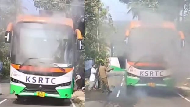 കെ എസ് ആർ ടി സിയുടെ എ സി സ്ലീപ്പർ ബസിന് തീപിടിച്ചു, ഒഴിവായത് വൻ ദുരന്തം