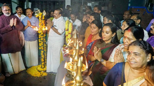 ക്ലിഫ് ഹൗസിന് മുന്നില് ‘അയ്യപ്പ ജ്യോതി’ തെളിയിച്ച് ബിജെപി, ‘വിശ്വാസവും സംസ്കാരവും നശിപ്പിക്കാന് അനുവദിക്കില്ല’