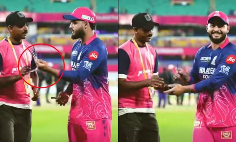 ഗ്രൗണ്ട് സ്റ്റാഫിനൊപ്പം സെൽഫിയെടുത്തു, മൊബൈൽ കയ്യിലേക്ക് ഇട്ടുകൊടുക്കാൻ ശ്രമം; വിവാദങ്ങളിൽ പരാഗിന്റെ ‘സെൽഫ് ട്രോൾ’