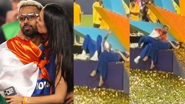 ‘ദേശീയ താരമാണെന്ന് മറക്കരുത്’; ലോകകപ്പ് ആഘോഷ വേദിയിൽ ഒരുമിച്ച് കിടന്ന് ചുംബിച്ചും കെട്ടിപ്പിടിച്ചും ഹാർദികും മഹികയും