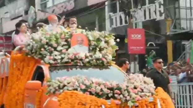 തൃശൂർ: തിരഞ്ഞെടുപ്പ് പ്രചാരണങ്ങൾക്കായി പ്രധാനമന്ത്രി നരേന്ദ്രമോദി തൃശൂരിലെത്തി. ഹെലികോപ്റ്ററിൽ കുട്ടനല്ലൂർ ഗവൺമെന്റ് കോളേജ് ഗ്രൗണ്ടിൽ വന്നിറങ്ങിയ മോദി തുറന്നവാഹനത്തിൽ റോഡ്ഷോ നടത്തിയാണ് സ്വരാജ് റൗണ്ടിലെ സമ്മേളനവേദിയിലെത്തിയത്. എൻഡി എ സ്ഥാനാർത്ഥികളായ സി സി മുകുന്ദൻ, പത്മജ വേണുഗോപാൽ, കെ കെ അനീഷ്കുമാർ എന്നിവർ അദ്ദേഹത്തിനൊപ്പം റോഡ്ഷോയിൽ പങ്കെടുത്തു. കേന്ദ്രസഹമന്ത്രി സുരേഷ് ഗോപിയും റോഡ് ഷോയുടെ ഭാഗമായി. 900 മീറ്റർ ദൂരത്തിൽ പലയിടങ്ങളിലായി വിവിധ കലാരൂപങ്ങളുടെ അവതരണങ്ങളാണ് ബിജെപി പ്രവർത്തകർ പ്രധാനമന്ത്രിക്കായി ഒരുക്കിയത്. രണ്ടരവർഷത്തിനിടയിൽ മൂന്നാം തവണയാണ് പ്രധാനമന്ത്രി തൃശൂരിൽ എത്തിയത്. ശക്തമായ സുരക്ഷാക്രമീകരണങ്ങളാണ് പ്രധാനമന്ത്രിക്കായി ഒരുക്കിയത്. ഏഴ് എസ്പിമാരുടെ നേതൃത്വത്തിലുള്ള സംഘത്തെയാണ് ഏഴ് പോയിന്റുകളിലായി വിന്യസിച്ചിരിക്കുന്നത്. ജില്ലാ കളക്ടറെത്തി പുറത്തെ സുരക്ഷാ ക്രമീകരണങ്ങൾ വിലയിരുത്തിയിരുന്നു.
