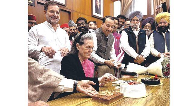 ന്യൂഡൽഹി: സി.പി.പി അദ്ധ്യക്ഷയും രാജ്യസഭാംഗവുമായ സോണിയാ ഗാന്ധിയുടെ 79-ാം പിറന്നാൾ പാർലമെന്റിലെ കോൺഗ്രസ് പാർലമെന്ററി പാർട്ടി ഓഫീസിൽ ഇന്നലെ ആഘോഷിച്ചു. ‘ഇന്ത്യ’ മുന്നണി നേതാക്കളായ കോൺഗ്രസ് അദ്ധ്യക്ഷൻ മല്ലികാർജ്ജുൻ ഖാർഗെ,പാർട്ടി നേതാക്കളായ രാഹുൽ ഗാന്ധി, പ്രിയങ്കാ ഗാന്ധി,കെ.സി. വേണുഗോപാൽ,സമാജ്‌‌വാദി പാർട്ടി നേതാവ് അഖിലേഷ് യാദവ്,ഭാര്യ ഡിംപിൾ യാദവ് തുടങ്ങിയവർ പങ്കെടുത്തു.