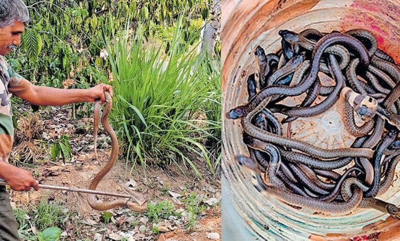 മാളത്തിൽനിന്നു തല വെളിയിലിട്ടിരിക്കുന്ന പാമ്പിനെ കണ്ടു; പരിശോധിച്ചപ്പോൾ പിടികൂടിയത് മൂർഖൻ പാമ്പിനെയും 25 കുഞ്ഞുങ്ങളെയും