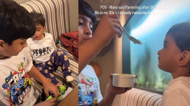 പേരന്റിംഗ് എന്നത് ഒട്ടും ചെറിയ കാര്യമല്ല. മാതാപിതാക്കൾ മാത്രമാണ് പേരന്റിംഗിൽ ഭാഗമാകുന്നതെന്ന ധാരണയും ശരിയല്ല. വളർ‌ച്ചയുടെ ഘട്ടത്തിൽ കുട്ടികൾക്ക് ചുറ്റുമുള്ള എല്ലാ മനുഷ്യരും അവരെ സ്വാധീനിക്കാറുണ്ട്. പലപ്പോഴും മൂത്തകുട്ടികൾക്ക് ഇളയകുട്ടികളുമായി നല്ല പ്രായവ്യത്യാസമുണ്ടെങ്കിൽ അച്ഛനമ്മമാരെക്കാൾ ഉത്തരവാദിത്തം കാണിക്കുന്നത് അവരായിരിക്കും. സത്യത്തിൽ ആദ്യത്തെക്കുട്ടികൾ താഴെയുള്ളവരെ നന്നായി ശ്രദ്ധിക്കുകയും സ്‌നേഹിക്കുകയും ചെയ്യുന്നവരാണെങ്കിൽ അച്ഛനമ്മമാരുടെ ബുദ്ധിമുട്ടുകൾ ഒരു പരിധിവരെ കുറഞ്ഞെന്നു തന്നെ പറയാം. ഇപ്പോഴിതാ രണ്ട് വയസുള്ള തന്റെ അനിയനെ പരിചരിക്കുന്ന 11 വയസുകാരന്റെ വീഡിയോയാണ് സോഷ്യൽ മീഡിയയിൽ പ്രചരിക്കുന്നത്. ‘മുപ്പതുകളിൽ പേരന്റിംഗ് വളരെ പ്രയാസമാണെന്ന് പലരും പറഞ്ഞ് കേട്ടിട്ടുണ്ടെന്നും അതിനാൽ തന്റെ ഇരുപതുകളിൽ തന്നെ ഒരു ബാക്ക്അപ് പ്ലാൻ രൂപപ്പെടുത്തിയിരുന്നു’ എന്ന കാപ്‌ഷനോടെയാണ് വീഡിയോ സോഷ്യൽമീഡിയയിൽ പങ്കുവച്ചിരിക്കുന്നത്. നിരവധിപേരാണ് മൂത്തകുട്ടിക്ക് അഭിനന്ദനം അറിയിക്കുന്നത്. പലരും കമന്റ്ബോക്‌സുകളിൽ സമാന അനുഭവങ്ങൾ പങ്കുവയ്‌ക്കുന്നുമുണ്ട്.