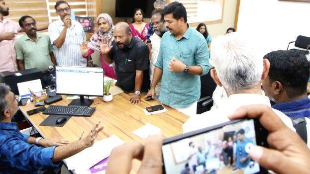 തൃശൂർ: മുഹൂർത്തം തെറ്റാതെ പത്രിക സമർപ്പിക്കുന്നതിന് മുറിയിലേക്ക് ഇടിച്ചുകയറിയ തൃശൂരിലെ എൻ.ഡി.എ സ്ഥാനാർത്ഥി പദ്മജ വേണുഗോപാലിനെയും ഗുജറാത്ത് മുഖ്യമന്ത്രി ഭൂപേന്ദ്ര പട്ടേലിനെയും വരണാധികാരി ഗെറ്റൗട്ടടിച്ചു. ഇന്നലെ രാവിലെ തൃശൂർ ആർ.ഡി.ഒ ഓഫീസിലായിരുന്നു സംഭവം.യു.ഡി.എഫിന് സ്ഥാനാർത്ഥി രാജൻ പല്ലനാണ് ആദ്യം പത്രിക നൽകാൻ അനുമതി നൽകിയത്. 10.30ന് ഓഫീസിലെത്തിയ രാജൻ പത്രിക നൽകി ഇറങ്ങുമ്പോൾ സമയം 11.10. തുടർന്ന് എൽ.ഡി.എഫ് സ്ഥാനാർത്ഥിയുടെ ഊഴമായി. സ്ഥാനാർത്ഥി ആലങ്കോട് ലീലാകൃഷ്ണനും വി.എസ്.സുനിൽകുമാറുമുൾപ്പെടെയുള്ളവർ വരണാധികാരിയുടെ ഓഫീസിലെത്തി.ഇതിനിടയിലാണ് പ്രകടനവുമായി എൻ.ഡി.എ സ്ഥാനാർത്ഥി പദ്മജയും ഗുജറാത്ത് മുഖ്യമന്ത്രി ഭൂപേന്ദ്ര പട്ടേലുമുൾപ്പെടെയുള്ളവർ എത്തിയത്. തുടർന്ന് മുഹൂർത്തം തെറ്റുമെന്ന് പറഞ്ഞ് പദ്മജയും പട്ടേലുമുൾപ്പെടെയുള്ളവർ മറ്റൊരു വാതിലിലൂടെ ഓഫീസിൽ കയറി. 11.30 മുതൽ 12.15 വരെ മുഹൂർത്തമാണെന്നും പത്രിക സ്വീകരിക്കണമെന്നും ആവശ്യപ്പെട്ടു.