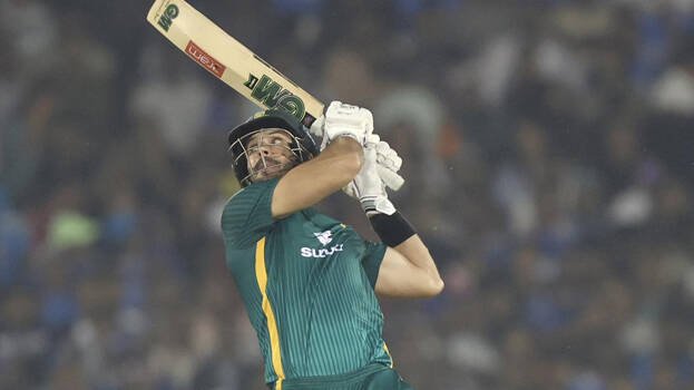 കൂറ്റന് വിജയലക്ഷ്യം പിന്തുടര്ന്ന ദക്ഷിണാഫ്രിക്കയ്ക്ക് ഓപ്പണര് ക്വിന്റണ് ഡി കോക്കിന്റെ വിക്കറ്റ് 8(11) അഞ്ചാം ഓവറില് നഷ്ടമായി. എന്നാല് മറ്റൊരു ഓപ്പണറായ എയ്ഡന് മാര്ക്രം നേടിയ തകര്പ്പന് സെഞ്ച്വറി 110(98) കരുത്തില് അടിത്തറ ശക്തമായി. രണ്ടാം വിക്കറ്റില് ക്യാപ്റ്റന് തെംബ ബവൂമ 46(48), മാര്ക്രം സഖ്യം 101 റണ്സ് കൂട്ടുകെട്ടാണ് പടുത്തുയര്ത്തിയത്. മാത്യു ബ്രീറ്റ്സ്കി 68(64), യുവതാരം ഡിവാള്ഡ് ബ്രെവിസ് 54(34) എന്നിവരുടെ അര്ദ്ധ സെഞ്ച്വറികള് കൂടിയായപ്പോള് ദക്ഷിണാഫ്രിക്ക ജയത്തിലേക്ക് അനായാസം മുന്നേറി.
