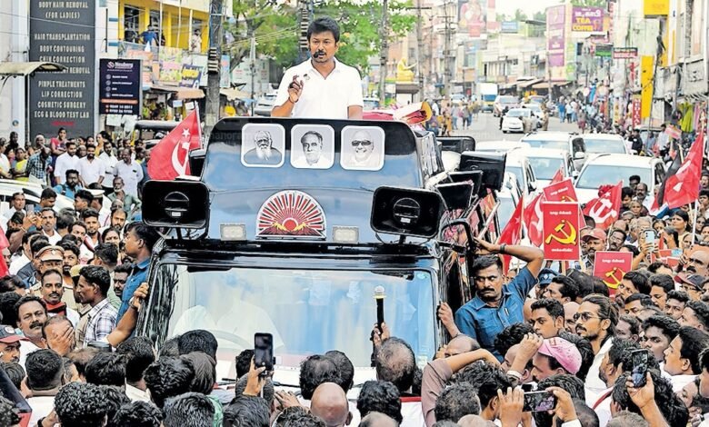 തലയ്ക്കു മുകളിലടിച്ച കാറ്റാണ് ആദ്യം വന്നത്; താഴ്ന്നുപറന്ന ഡ്രോണുകളിൽനിന്നുള്ള ആ കാറ്റിൽ നായകന്റെ വരവറിഞ്ഞ് ജനം വിളിച്ചു – വാഴ്ക, വാഴ്ക, വരിക, വരിക ഇളംതലൈവർ! ചീറിപ്പാഞ്ഞെത്തിയ കാറുകളിൽ ഡ്രൈവറൊഴികെ എല്ലാവരും ജനൽപടിയിലാണിരുന്നത്; കയ്യും തലയും പുറത്തിട്ട് അലറിവിളിച്ച്. വരിവരിയായി പാഞ്ഞ വെളുത്ത കാറുകളും ആർപ്പുവിളികളും തട്ടുപൊളിപ്പൻ ഗാനവും – തക്കലക്കവല തനി തമിഴ് പടത്തിന്റെ ആരവത്തിൽ മുങ്ങിനിൽക്കെ, ജനം കാത്തിരുന്ന ഇളംതലൈവർ എത്തി. തുറന്ന വാഹനത്തിന്റെ മുന്നിൽ സ്ഥാപിച്ച ഉദയസൂര്യൻ ചിഹ്നത്തിനൊപ്പം തലയെടുപ്പോടെ തമിഴ്നാട് ഉപമുഖ്യമന്ത്രിയും ഡിഎംകെ നേതാവുമായ ഉദയനിധി സ്റ്റാലിൻ നിന്നു.പ്രസംഗത്തിൽ പക്ഷേ, ഉദയനിധി പ്രധാനമായും ഉന്നമിട്ടത് അണ്ണാഡിഎംകെ – എൻഡിഎ സഖ്യത്തെയാണ്. എടപ്പാടി പളനിസാമിക്കു കണക്കിനു പരിഹാസം; പ്രധാനമന്ത്രി മോദിക്കുനേരെ ഉശിരൻ തമിഴ് വാക്കുകൾകൊണ്ടുള്ള വെല്ലുവിളി. ശശികലയുടെ കാലിൽ വീണ് നമസ്കരിക്കുന്ന എടപ്പാടിയുടെ ചിത്രം ഉദയനിധി ഉയർത്തിക്കാട്ടിയപ്പോഴേ ജനത്തിനു ചിരിപൊട്ടി. ‘ജയലളിതയുണ്ടായിരുന്നപ്പോൾ അവരുടെ കാലിൽ വീണു. പിന്നീട് ശശികലയുടെ കാലിൽ, തുടർന്ന് ടി.ടി.വി.ദിനകരന്റെ കാലിൽ, ഇപ്പോൾ ഡൽഹിയുടെ കാലിൽ വീഴുന്നു’ – തമിഴ്നാടിന്റെ ആത്മാഭിമാനം അടിയറവച്ച നേതാവായി ചിത്രീകരിച്ച് എടപ്പാടിക്കെതിരെ തമിഴ്‌രോഷം ആളിക്കത്തിച്ചുള്ള പ്രസംഗം. മോദിയിലേക്കു കടന്നതോടെ ഉദയനിധി കത്തിക്കയറി – ‘ഇത്രയും നാൾ തമിഴ്നാട് ഡൽഹിയുടെ ഒൗട്ട് ഓഫ് കൺട്രോളിലായിരുന്നു. ഇനിയും അങ്ങനെത്തന്നെ തുടരും. നമ്മൾ ആരുടെയും അടിമയല്ല. ഇപ്പോൾ തിരഞ്ഞെടുപ്പായതുകൊണ്ടാണ് മോദി ഇവിടേക്കു വരുന്നത്. തമിഴ്നാടിന് എന്തു നൽകിയെന്ന് മോദിയോടു നിങ്ങൾ ചോദിക്കില്ലേ’. ഉറപ്പായും ചോദിച്ചിരിക്കുമെന്ന് ഒരേസ്വരത്തിൽ ജനത്തിന്റെ മറുപടി.