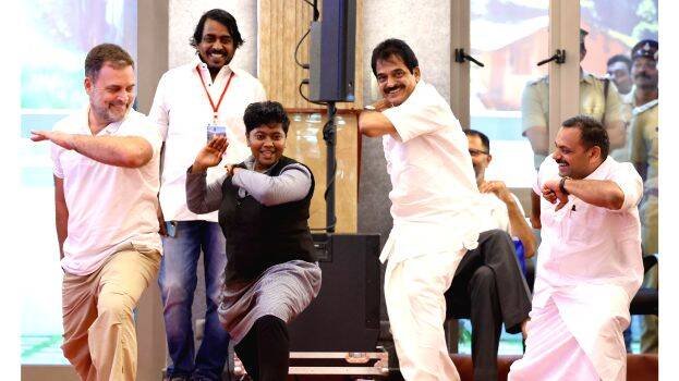 കുട്ടിക്കാനം (ഇടുക്കി): വിദ്യാർത്ഥിനിക്കൊപ്പം കളരി ചുവടുവച്ച് കോൺഗ്രസ് നേതാവ് രാഹുൽ ഗാന്ധിയും എം.പിമാരായ കെ.സി. വേണുഗോപാലും ഡീൻ കുര്യാക്കോസും. കുട്ടിക്കാനം മരിയൻ കോളേജിൽ വിദ്യാർത്ഥികളുമായി നടന്ന സംവാദ പരിപാടിയിലായിരുന്നു രാഹുലിന്റെ കളരി അഭ്യാസം.കോളേജിലെ ഒന്നാംവർഷ ബി.എസ്.ഡബ്ല്യു വിദ്യാർത്ഥിയും കളരിപ്പയറ്റ് അഭ്യാസിയുമായ എം. ദിനശ്രീയുടെ ക്ഷണം സ്വീകരിച്ചാണ് രാഹുൽ ചുവടുവച്ചത്. ദിനശ്രീ തെക്കൻ, വടക്കൻ കളരി ശൈലിയെക്കുറിച്ച് വിശദീകരിച്ചശേഷം രാഹുലിനോട് വടക്കൻ ശൈലിയിൽ കുറച്ചു ചുവടുകൾ താൻ കാണിക്കട്ടെയെന്നും ഒപ്പം കൂടാമോയെന്നും ചോദിച്ചു. ആദ്യം ചെയ്യുന്നതൊന്ന് കാണട്ടെ എന്നായി രാഹുൽ.തുടർന്ന് ഗുരുവന്ദനം ചെയ്തശേഷം ദിനശ്രീ വീണ്ടും രാഹുലിനെ ക്ഷണിച്ചു. സ്റ്റേജിൽ നിന്നിറങ്ങിയ രാഹുൽ കെ.സി.വേണുഗോപാലിനോടും ഡീൻ കുര്യാക്കോസിനോടും ഒപ്പംകൂടാൻ ആവശ്യപ്പെട്ടു. ദിനശ്രീ ചെയ്തത് മൂവരും അനുകരിച്ചു. രാഹുൽ നിഷ്പ്രയാസം ചുവടുവച്ചെങ്കിലും വേണുഗോപാലും ഡീനും അല്പം വിഷമിച്ചു. തലയ്ക്കു മുകളിൽ ഉയർത്തിപ്പിടിച്ച കൈയിൽ കാൽ മുട്ടിക്കുന്ന അടവ് ദിനശ്രീ ചെയ്യുന്നത് കണ്ടപ്പോൾ വേണുഗോപാലും ഡീനും പിൻവാങ്ങി. രാഹുൽ ആ ചുവടും മനോഹരമായി ചെയ്തതോടെ നിറഞ്ഞ കൈയടി അകമ്പടിയായെത്തി.