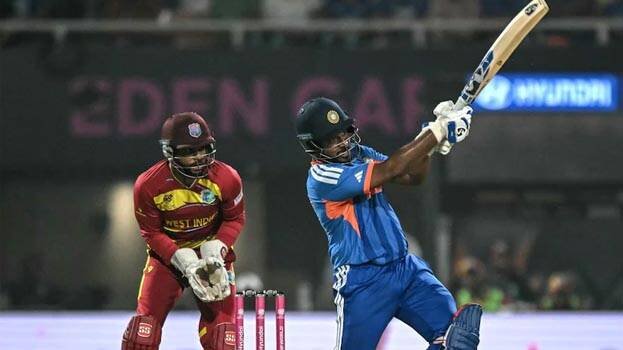 കൊൽക്കത്ത: ട്വന്റി20 ലോകകപ്പ് സെമി പ്രവേശനത്തിന് വിൻഡീസിനെതിരെ ഇന്ത്യക്ക് വേണ്ടത് 196 റൺസ്. ഒടുവിൽ റിപ്പോർട്ട് കിട്ടുമ്പോൾ ഇന്ത്യ10.2 ഓവറിൽ മൂന്നു വിക്കറ്റ് നഷ്ടത്തിൽ 99 എന്ന നിലയിലാണ്. 55 റൺസുമായി മലയാളി താരം സഞ്ജു സാംസണുംഒരു റണ്ണുമായി തിലക് വർ‌മ്മയുമാണ് ക്രീസിൽ. സൂര്യകുമാർ ​ യാദവ് (18),​ ഇഷാൻ കിഷൻ(10)​,​ അഭിഷേക് ശർമ്മ(10)​ എന്നിവരാണ് പുറത്തായത്. ആദ്യം ബാറ്റ് ചെയ്ത വിൻഡീസ് ഇരുപത് ഓവറിൽ നാല് വിക്കറ്റ് നഷ്ടത്തിൽ 195 റൺസാണ് നേടിയത്. ടോസ് നേടിയ ഇന്ത്യൻ ക്യാപ്ടൻ സൂര്യകുമാർ യാദവ് വിൻഡീസിനെ ബാറ്റിംഗിനയക്കുകയായിരുന്നു. മികച്ച തുടക്കം ലഭിച്ച വിൻഡീസ് ഇടയ്ക്കൊന്ന് പതറിയെങ്കിലും പിന്നീട് മത്സരത്തിലേക്ക് തിരിച്ചുവരികയായിരുന്നു