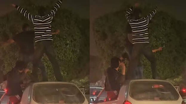ഓടുന്ന കാറിന് മുകളിൽ ഡാൻസ് കളിച്ച് യുവാക്കളുടെ ന്യൂഇയർ ആഘോഷം; കനത്ത പിഴ ചുമത്തി പൊലീസ്